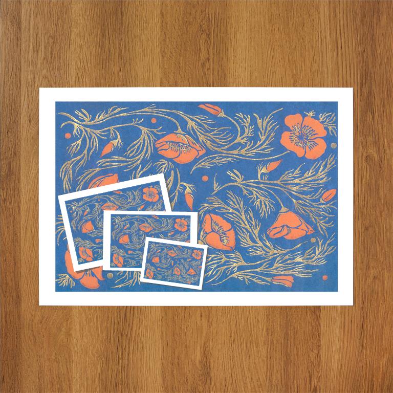 DA-838 Poppies on Blue - Vintage Image
