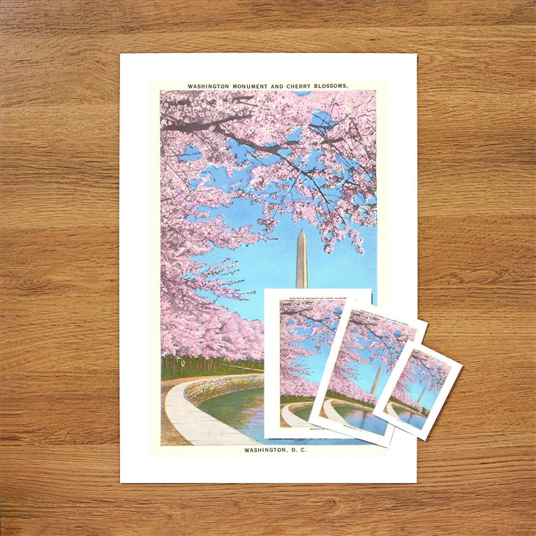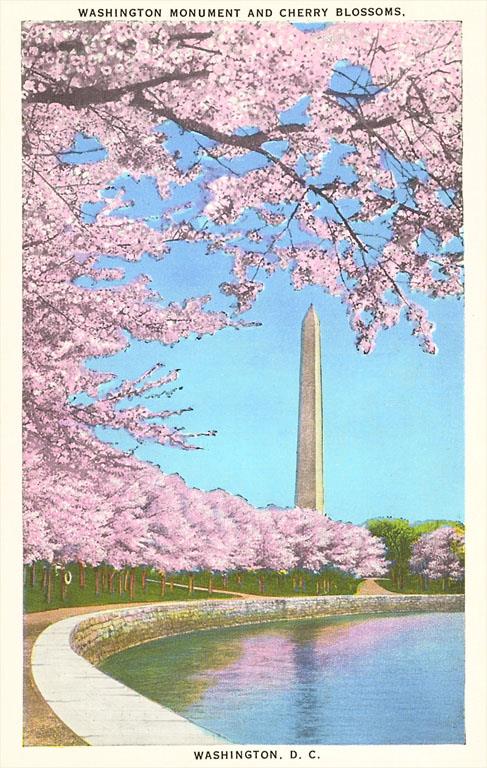 DC-18 Cherry Blossoms, Washington Monument - Vintage Image