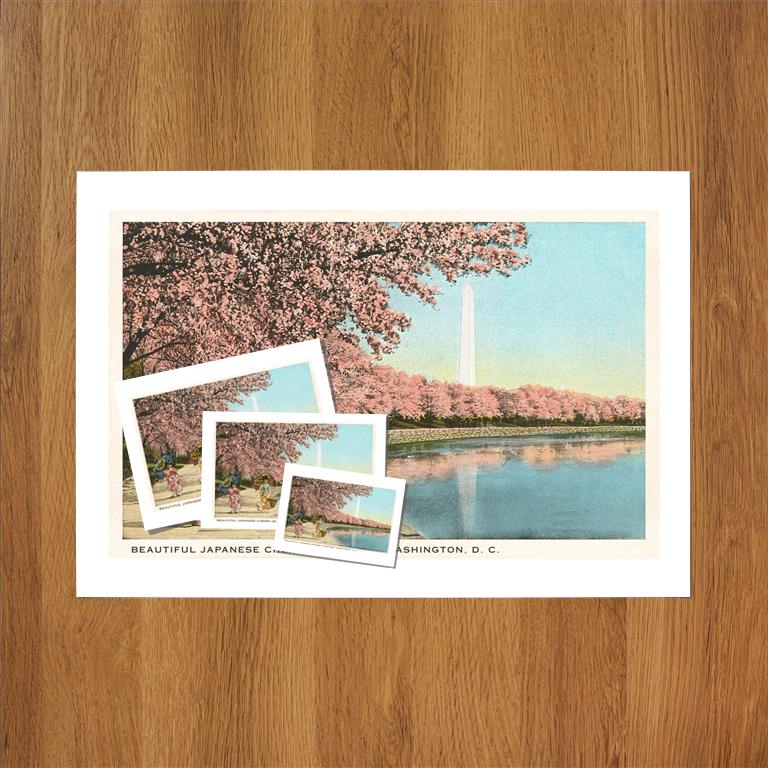 DC-234 Japanese Children, Cherry Blossoms - Vintage Image