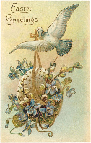 EA-11 Easter Greeting, Dove Carrying Egg - Vintage Image