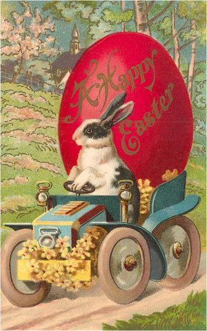 EA-31 A Happy Easter, Rabbit Driving Tractor - Vintage Image