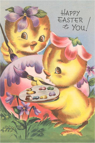 EA-106 Happy Easter, Chicks Painting Egg - Vintage Image