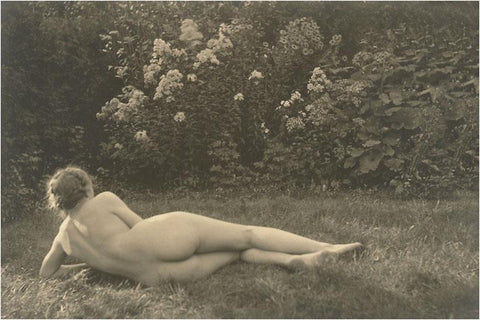 EX-78 Naked Woman on Grass with Hedges - Vintage Image