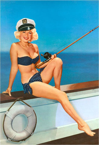GY-85 Woman Fishing in Bikini and Captain's Hat - Vintage Image