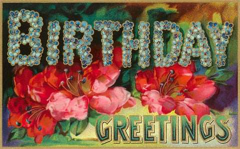 HB-27 Birthday Greetings, Flowers - Vintage Image