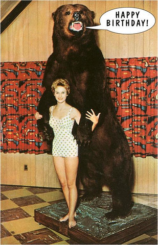 HB-57 Happy Birthday, Woman with Bear - Vintage Image