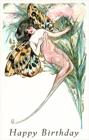 HB-97 Happy Birthday, Butterfly Woman - Vintage Image