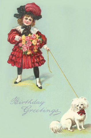 HB-364 Vintage Birthday Greetings, Girl and Dog - Vintage Image