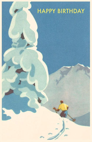 HB-403 Happy Birthday, Skiing - Vintage Image