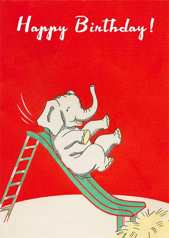 HB-542 Happy Birthday, Elephant on Slide - Vintage Image