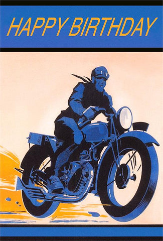 HB-587 Happy Birthday Blue Motorcycle - Vintage Image