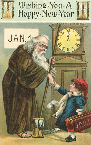 HN-10 Happy New Year, Old Man Time and Child - Vintage Image