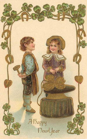 HN-61 Happy New Year, Children with Anvil - Vintage Image