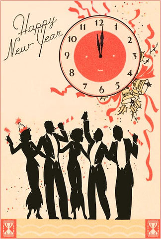 HN-82 Happy New Year, Men in Tuxedos, Clock at Midnight - Vintage Image