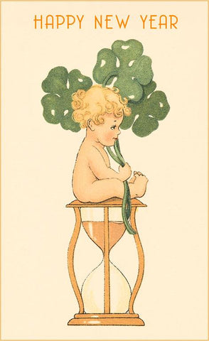 HN-150 Baby on Hourglass with Four-Leaf Clovers - Vintage Image