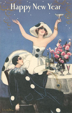 HN-185 Happy New Year, Pierrot Celebrating - Vintage Image