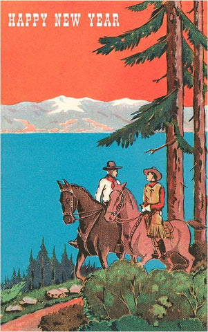 HN-191 Happy New Year, Cowboys by Lake - Vintage Image