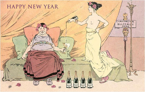 HN-198 Happy New Year, Bacchus Drinking Champagne - Vintage Image