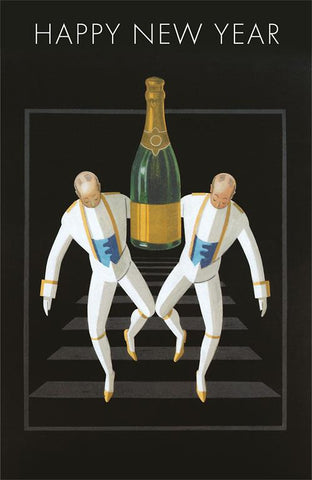 HN-204 Happy New Year, Footmen with Champagne - Vintage Image