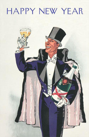 HN-209 Happy New Year, Swell with Champagne - Vintage Image