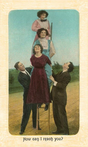 HU-01 How Can I Reach You? People on Ladder - Vintage Image