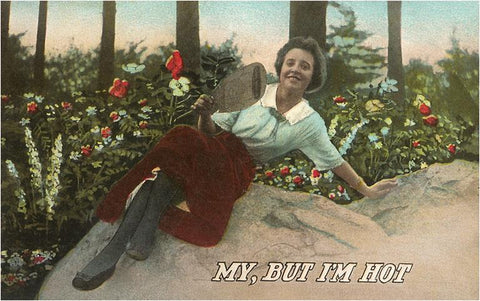HU-07 My, But I'm Hot, Girl with Fan - Vintage Image