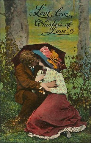 HU-10 Love, Love, Whispers of Love, Couple Kissing - Vintage Image