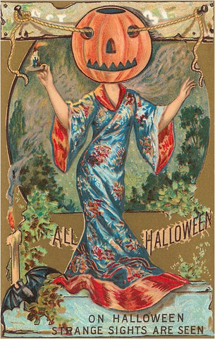 HW-44 Halloween, Geisha with Jack O'Lantern Head - Vintage Image