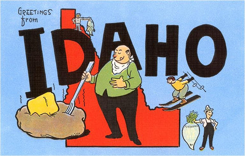 ID-72 Greetings from Idaho, Cartoon - Vintage Image