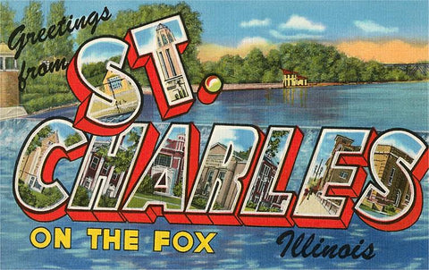 IL-168 Greetings from St. Charles, Illinois, on the Fox - Vintage Image