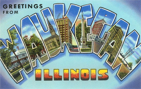 IL-176 Greetings from Waukegan, Illinois - Vintage Image
