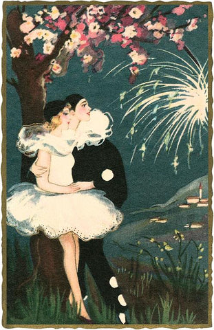 KU-107 Pierrot and Ballerina with Fireworks - Vintage Image