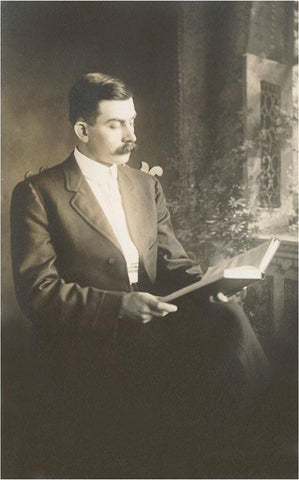 MZ-52 Mustached Man Reading Book - Vintage Image