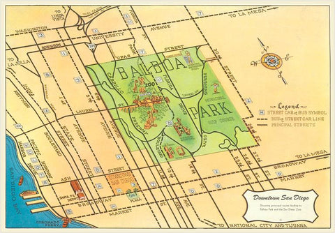 SD-609 Map of Balboa Park and San Diego, California - Vintage Image